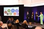 Members of Monarch Informatics make their case for funding during the Dunin-Deshpande Queen’s Innovation Centre (DDQIC) Summer Pitch competition. The team was awarded $20,000. (Queen's University)