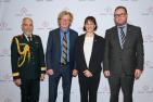 Members of CIMVHR meeting with representatives from the Canadian Armed Forces and Veterans Affairs Canada at CIMVHR's Forum 2023. From left: Major-General Marc Bilodeau, former Surgeon General of the Canadian Armed Forces; David Pedlar, Scientific Director, CIMVHR; Stéphanie Bélanger, Associate Scientific Director, CIMVHR; Paul Ledwell, Deputy Minister, Veterans Affairs Canada.