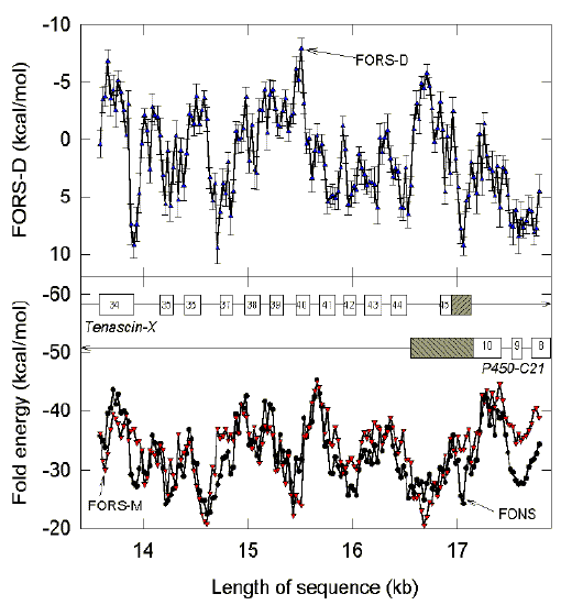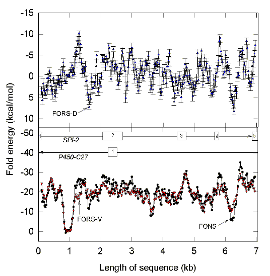 order-dependent stem-loop (folding) potentials (FORS-D values), were