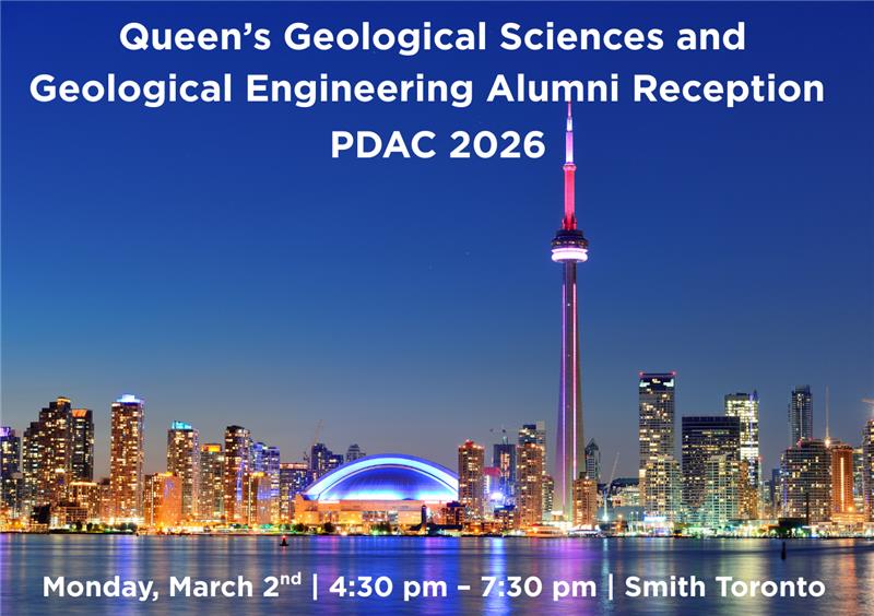 You're invited to the annual Queen's Geological Sciences and Geological Engineering alumni reception during the Prospectors & Developers Association of Canada (PDAC) Conference in Toronto.