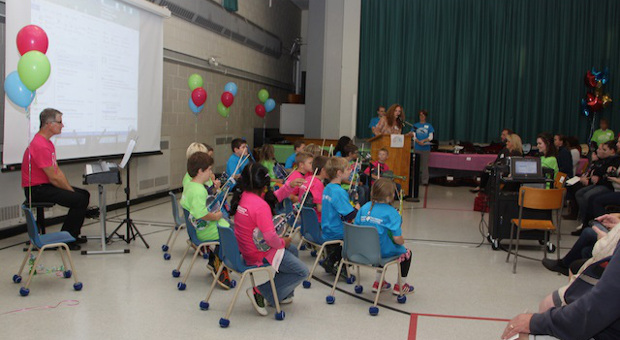 Last week, 20 students at First Avenue Public School took part in Sistema Kingston’s Paper to Wood Ceremony. The kids exchanged their paper mache instruments – which they made during the first four weeks of the program and used to learn proper posture, care, and bow movement – for real violins, cellos and violas. The result was a ceremony filled with joy, music, performances and proud family members.
