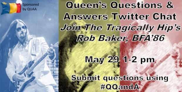 The Tragically Hip guitarist Rob Baker, BFA’86, is taking part in Queen’s Questions and Answers (#QQandA), an online Twitter Chat presented by the Queen’s University Alumni Association.