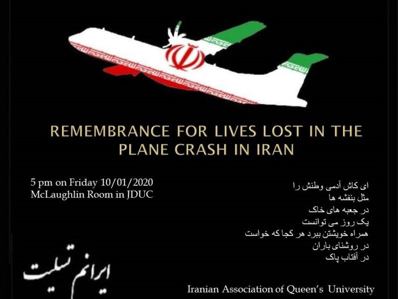 We encourage you to join us at the vigil being held by the Iranian Student Association for all of the individuals who perished in the crash. The vigil will take place at 5 p.m. today in the John Deutsch University Centre.
