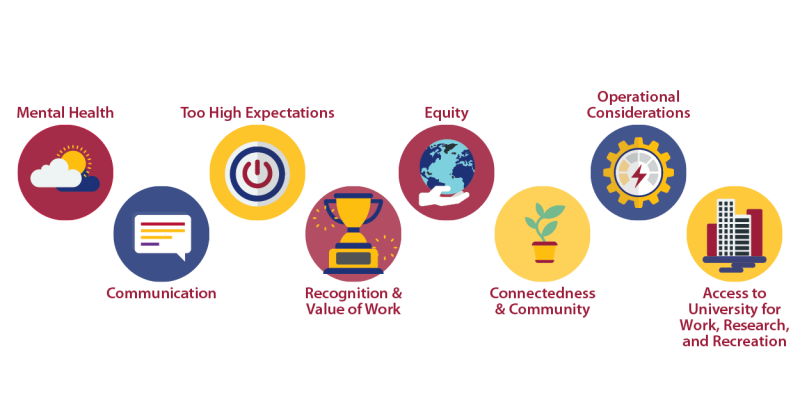 Eight main themes emerged from the responses of staff, faculty, and students: