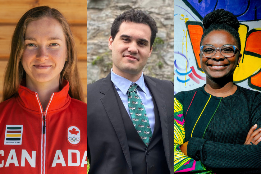 From left to right are FAS Vanier recipients Haley Smith (School of Kinesiology and Health Studies), Tristan Austin (Physics, Engineering Physics, and Astronomy), and Edem (Roberta) Abbeyquaye (Film and Media).
