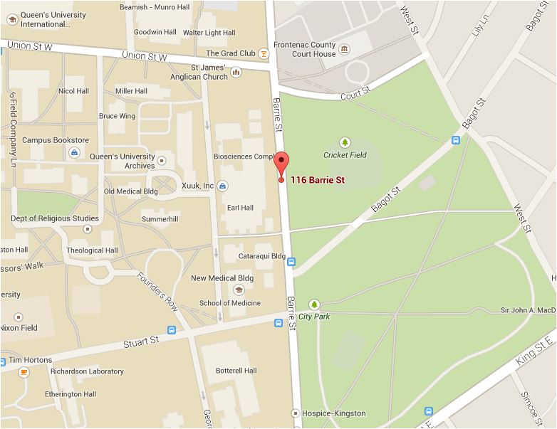 From Google Maps. Barrie Street Entrance to the Biosciences Building (116 Barrie Street), Kingston.