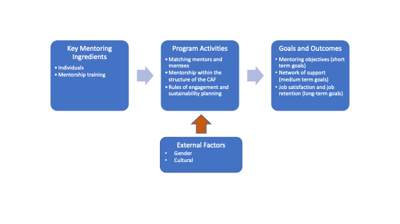 - Individuals: Individuals involved include potential mentors and mentees, as well as those within the organization who support mentorship participants. In particular, the Chain of Command and others in military leadership can facilitate and contribute to the mentorship of women.