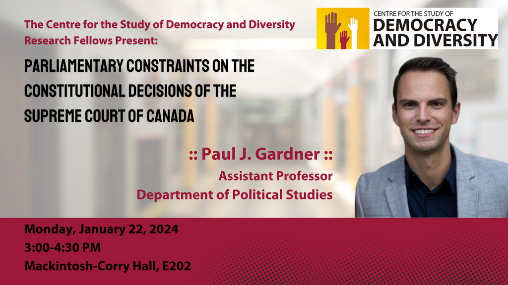 CSDD Research Fellows Present: "Parliamentary Constraints on the Constitutional Decisions of the Supreme Court of Canada" - Paul J. Gardner