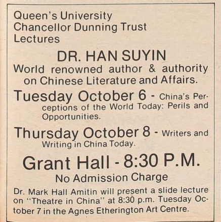 Dr. Han was on campus for five days in October, during which she gave two public lectures: “The Chinese Perception of the World” and “Writers and Writing in China Today.”