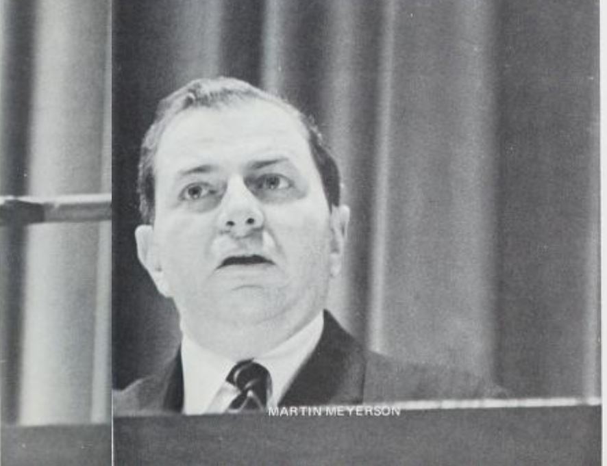 Meyerson was an authority on urban planning. He was professor of public policy and the president of the State University of New York at Buffalo. Over the course of his career, he worked at a number of universities including Harvard and UC Berkeley. Meyerson authored several books including Politics, Planning and Public Interest and Face of the Metropolis. During his early career in city planning, Meyerson called for the integration of social science and economics. Meyerson was a United Nations advisor and delegate, as well as a consultant to several West African nations and to the Governor of the Tokyo Metropolitan Area. He founded London’s Centre for Environmental Studies and Japan’s International Centre for the Study of East Asian Development. He was an advisor to France’s Institut National de la Communication Audiovisuelle. He chaired the International Institute for Education and was President of the International Association of Universities. He held leadership positions with many US organizations dedicated to urban affairs, education, science, foreign policy, conservation, and the arts. He served on several White House task forces and on the councils of government agencies. He was also decorated by the governments of France, Italy, and Japan. He received numerous prizes and held over 20 honorary degrees, including a doctor of laws degree conferred by Penn in 1970.