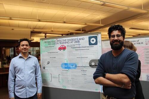 Our Master of Industrial Relations students participated in a mini poster session yesterday as a capstone project for their course in Organizational Behavior (OB). Students identified organizations in the news for an OB-related issue, explored the nature of the issue, and offered evidence-based suggestions for tackling it. The students did fantastic work representing the MIR program!