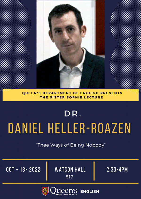 Dr. Daniel Heller-Roazen will be delivering the Sister Sophie Lecture, and his talk is entitled "Three Ways of Being Nobody"