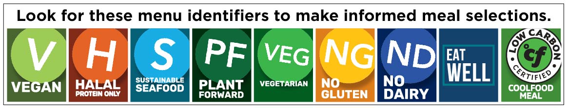 Please note: Icon identifiers may change, and ingredients may vary. Always reference the in-person dining hall signage for the most accurate ingredient and allergen information and remember to Ask Before You Eat.