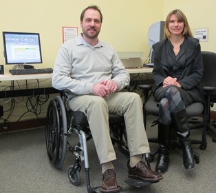 Andrew Ashby, Adaptive Technologies Specialist, and Michele Chittenden, Coordinator of Library Services for Students with Disabilities, both work in the Adaptive Technology Centre in Stauffer Library. At the Adaptive Technology Centre (ATC) – a resource and study centre for students with disabilities in Stauffer Library – Andrew Ashby keeps his door open to the student work space and rest area. As an adaptive technologies specialist, he is there to answer questions on the technological resources available. But his support extends way beyond the practical.