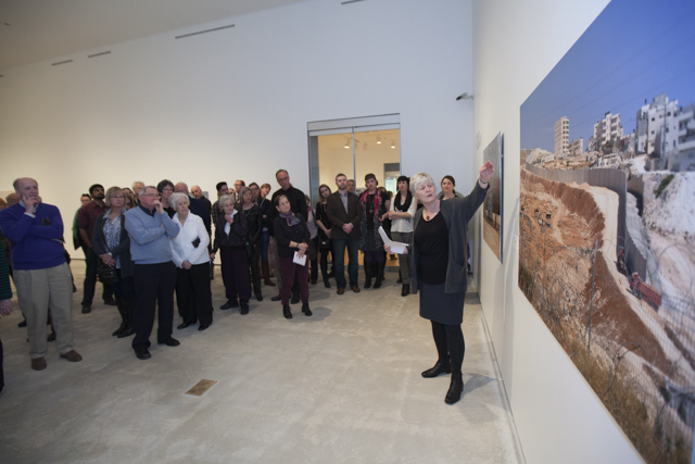 Curator Christine Conley leads a tour of Terms of Engagement during the spring launch of exhibitions at the Agnes Etherington Art Centre on April 26.Terms of Engagement displays works by three artists who participated in the Canadian Forces Artists Program (CFAP). Adrian Stimson, Dick Averns and nichola feldman-kiss deployed to Afghanistan, Sinai and Sudan with the United Nations mission, respectively, from 2009-2011. Unlike previous war art programs that date back to the First World War, the CFAP does not exhibit, purchase or otherwise support artists once their deployment is over.