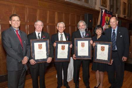 Four members of the Queen’s community were presented with Distinguished Service Awards (DSA) this past weekend at the annual dinner of the University Council. Chancellor David Dodge, who chairs the Council, and Principal Daniel Woolf presented the awards to Kim Black, David Ginsburg, Greg Lessard and Alistair MacLean.