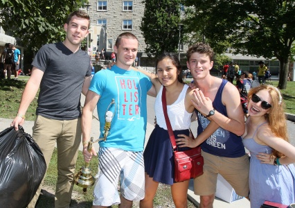 First year students meet outside of residence during the September 1 move-in: residence staff and senior students were on hand to help make the busy day run as smoothly as possible.