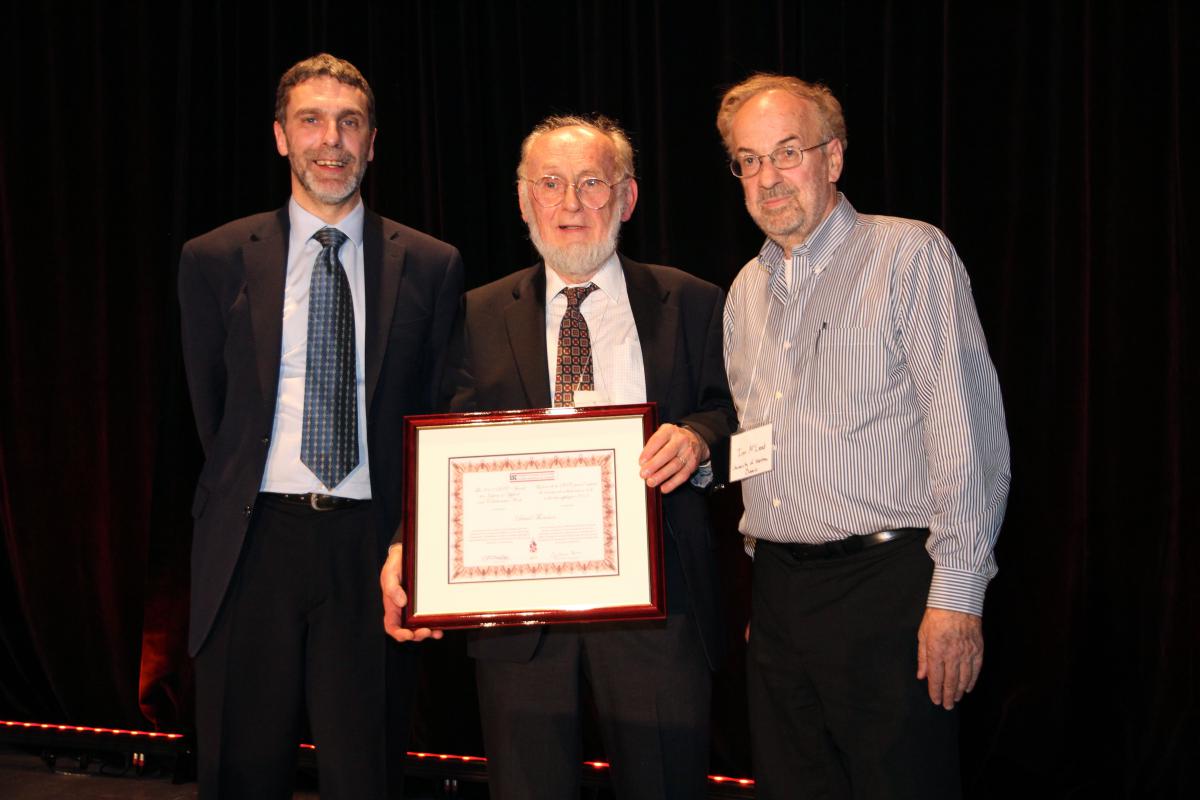 Presenting David Thomson with the award were Christian Léger (l), Université