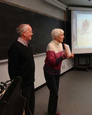 Mike McMurtry of The Field Botanists of Ontario presents professor emeritus Adele Crowder (right) with the organization’s Goldie Award at the recent annual general meeting of the Kingston Field Naturalists.“It was lovely to receive the award although I felt rather humbled as I never quite considered myself a field botanist,” said Dr. Crowder from her farm west of the village of Yarker.