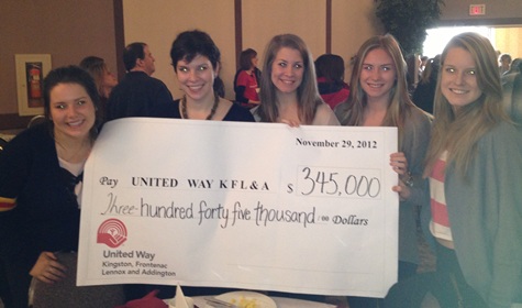 Members of the AMS United Way committee presented the charity with a cheque at a campaign wrap-up breakfast on November 29.A campus-wide campaign involving faculty, staff, retirees and students has raised $345,000 for the United Way. The amount surpasses the original fundraising goal by $20,000. While fundraising initiatives on campus continue, representatives from the Queen’s team presented the charity with a cheque at a campaign wrap-up breakfast on November 29. The Queen’s campaign is the largest United Way workplace campaign in Kingston, Frontenac, Lennox & Addington.