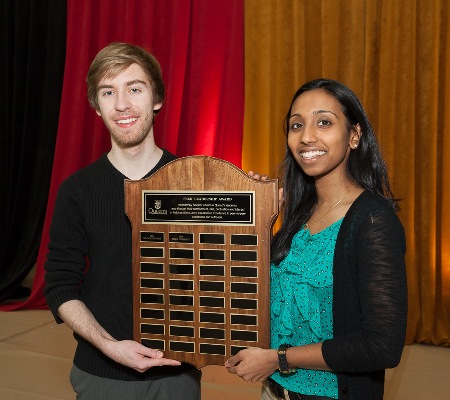 Sean Doherty and Roopa Suppiah accept the inaugural Peer Leadership Awards.Sean Doherty (Sc’15) and Roopa Suppiah (Sc’14) have received inaugural Peer Leadership Awards for their dedication to peer-to-peer assistance, education and outreach.