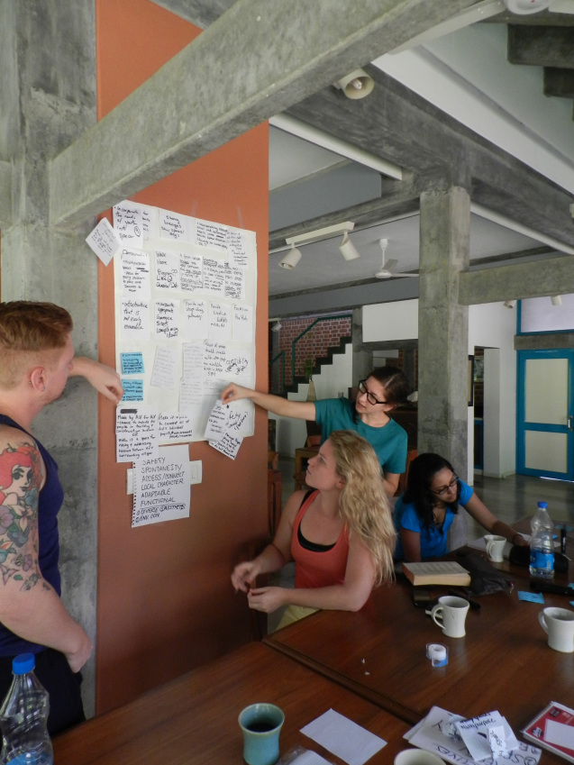 Arriving at their guest-house at 4 am after a long flight from Canada, the students awoke to a busy, but stimulating, schedule. Breaking into small groups, they spent their days interviewing residents, visiting sites, and trying to get a sense of how social spaces are used in Auroville.
