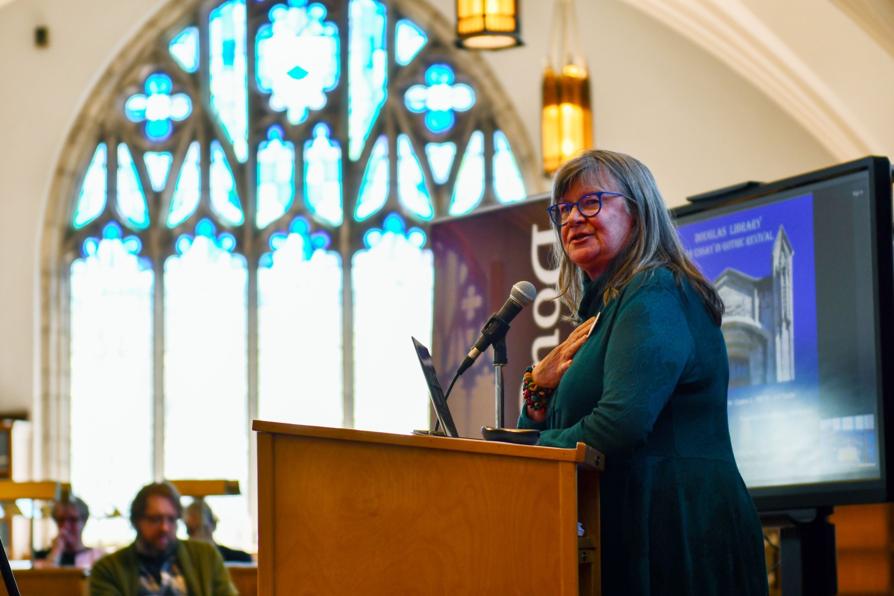 Then a lecture, “Douglas Library: An Essay in Gothic Revival,” was given by renowned architectural historian, Jennifer McKendry, who discussed the building’s unique Gothic architecture. The festivities were wrapped up with some closing remarks by Brendan Edwards, Curator, W.D. Jordan Rare Books and Special Collections.