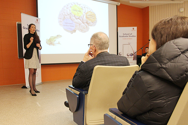 “Competing in the 3MT was one of the highlights of my Masters studies,” says Anastasia Savrova, MSc’17, winner of the 2016 Queen’s 3MT competition. “It was encouraging to hear people were so excited about my research, and this experience has really pushed me to pursue more opportunities where I can get the public more involved in academic research.”