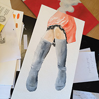 “She is also trying to hold onto moments, taking bits of tangible things – a paper cup from a burger place that she’s written our names on – so she doesn’t forget them. I think bringing her into my painting is one of my ways to cope with her illness.”