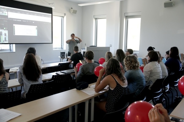 Matt Rogalsky (Music), who was teaching a class on recording techniques, acoustics and radio production Monday morning, also says he is excited to be teaching at the Isabel.