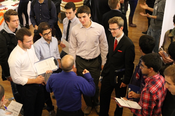 Crowds of Queen's University students filled Grant Hall on Tuesday to take in the Engineering & Technology Fair, which offered connections to close to 40 employers from a wide range of industries and sectors. The event, hosted by Career Services, continues Wednesday from 10:30 am-3:30 pm