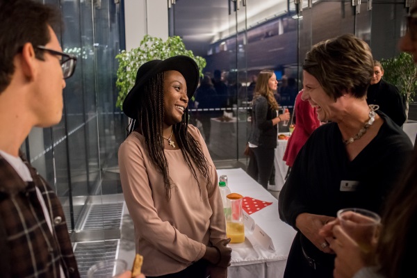 Students, as well as faculty, staff, and senior university administrators, met at a reception before the musical performance – by Montreal's Collectif9 – and had a chance to hear about the string band's philosophy from one of its cellists, Andrea Stewart.