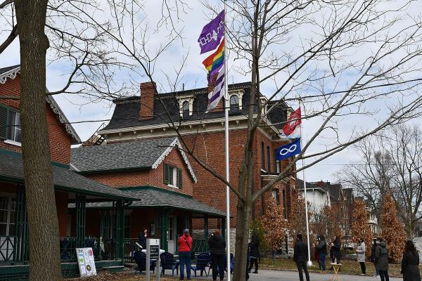 A special event was held on April 5 to celebrate the newly-raised flags outside the Four Directions Indigenous Student Centre. In collaboration with the Yellow House, the flag raising represents the ongoing support and allyship between Indigenous, gay, queer, trans, and 2spirit students across campus.