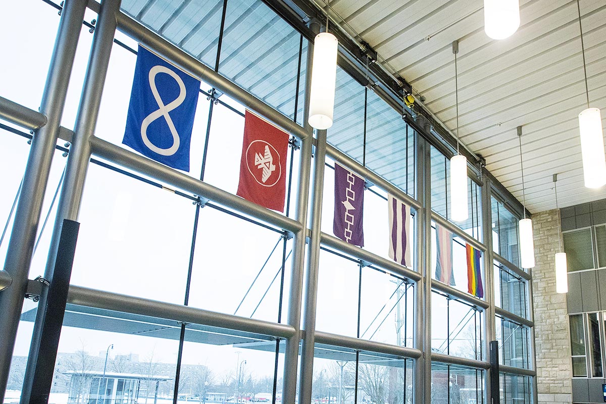 Six flags – Anishinaabe First Nations People, Six Nations Confederacy, Two Row Wampum, Métis Nation, LGBTQ2S+ Pride, and Trans Pride – have been placed at the Athletics and Recreation Centre (ARC), Chernoff Hall, Goodes Hall, New Medical Building, in addition to the Faculty of Education and the School of Kinesiology and Health Studies buildings.