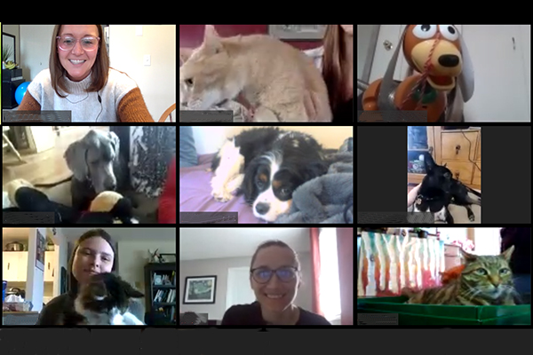 During these uncertain times, the SEO has created various opportunities for students to take a break and calm any anxieties they might be feeling. Their virtual pet stress relief sessions over Zoom have been especially popular. During these group calls, students have been on camera with their pets to spread some happiness with their peers. These Zoom sessions have also given them the chance to share their experiences studying from home and to feel linked with the Queen’s community.