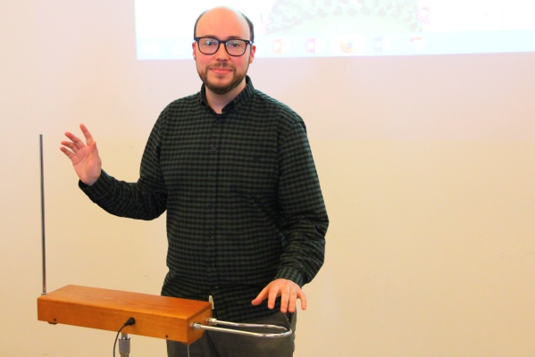 Equipped with his whirring theremin, the winner of the 2014 Scotiabank Giller Prize, Sean Michaels, visited campus on Friday.