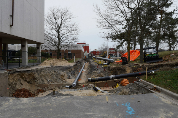 Construction has begun on the West Campus District Energy Conversion Project – a $10.5 million retrofit that will replace an inefficient 46-year-old underground steam line with a new heating system. Transitioning to the new infrastructure will reduce Queen’s University’s greenhouse gas emissions by another 1,500 metric tonnes of carbon dioxide (CO2) per year. The project was made possible through an $8.9 million provincial government funding contribution.