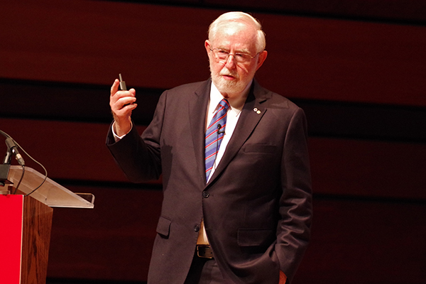 Nobel Laureate and Professor Emeritus Arthur McDonald delivered the Herzberg Memorial Public Lecture at the Isabel Bader Centre for the Performing Arts on Monday, as part of the Canadian Association of Physicists Annual Congress, being hosted at Queen’s May28-June 2.