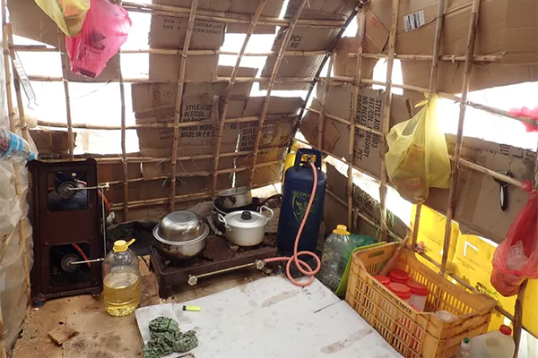Besides the dangers of fire, barangas present other challenges. They don’t insulate against the elements. In the summer, the temperature inside reaches 50C and in winter, it is below freezing. Thin mattresses and blankets lie on dirt-packed floors covered with a patchwork of cardboard.