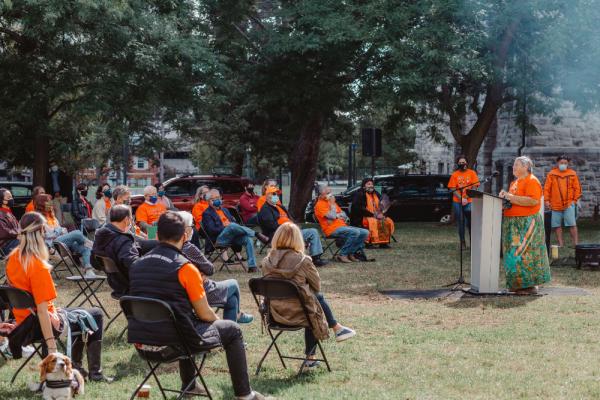Kanonhsyonne (Janice Hill), Associate Vice-Principal (Indigenous Initiatives and Reconciliation), spoke of the importance of a new National Day for Truth and Reconciliation. Throughout the month, the office she leads highlighted events, learning opportunities, and campus resources through which the Queen’s community could engage and learn about Indigenous history and experiences.