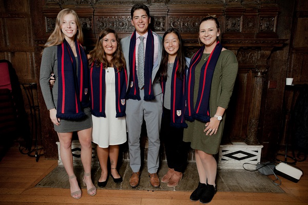 On Sept. 10, students at the Bader International Study Centre (BISC) received their scarves – a navy blue knit with red stripes and the BISC logo – in a special ceremony. The scarves were presented to the students by Hugh Horton, Vice Provost and Executive Director of the BISC; Christian Lloyd, the BISC’s Academic Director; and Dr. Anna Taylor, BISC Deputy Academic Director.