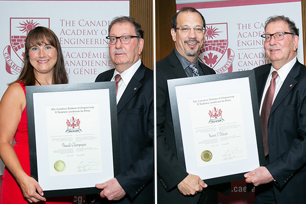 Two faculty members from Queen’s Faculty of Engineering and Applied Science, Pascale Champagne (Civil Engineering) and Kevin Deluzio (Dean; Mechanical and Materials Engineering), were inducted as fellows of the Canadian Academy of Engineering at its annual general meeting in Quebec City on Friday, June 21.