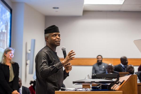 “We need to recognize that climate change is an inherently social issue with important social justice implications,” says Vice-President Osinbajo, who fielded questions from attendees following his remarks. “In particular, the poor and the vulnerable largely in developing countries will be the first to suffer and of course are already suffering. So then we need to reframe our climate action paradigm from merely a technical effort to cut emissions to an approach that places people and addressing social inequality at the centre of our efforts.”