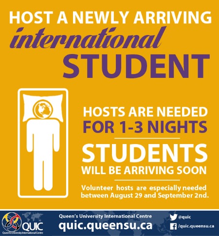 Anyone interested in offering a place to stay can find more information at QUIC’s website or contact IHC@queensu.ca.