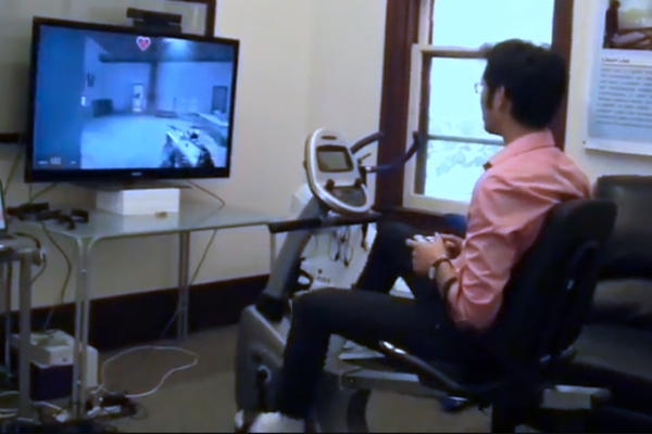 Nicholas Graham (Computing) and his team of researchers in the EQUIS Laboratory have developed a new way to get video game players moving - by turning pedal power from a stationary bike into in-game powerups for players.
