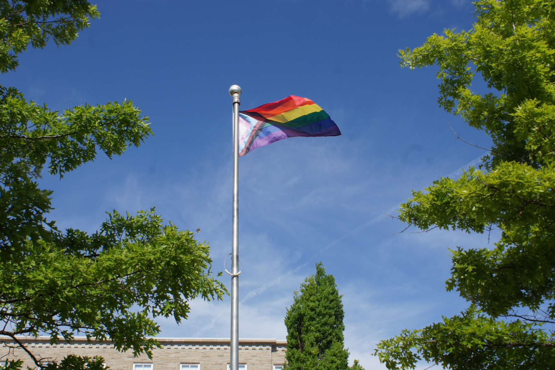 June is Pride Month, and Queen’s is flying the Progress Pride Flag in front of Douglas Library to recognize this significant time of year and show support for the 2SLGBTQ+ community.