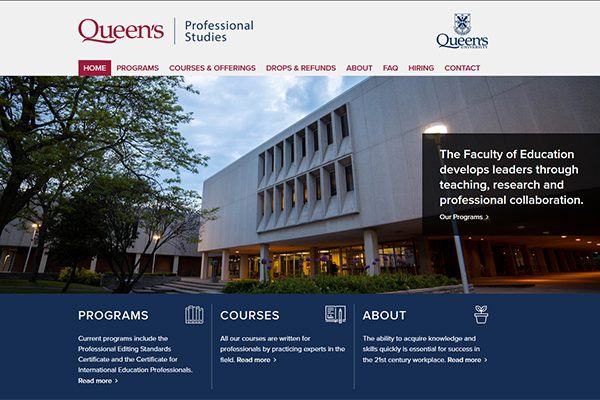 Offering online professional development courses for working professionals, Queen’s University Professional Studies recently launched a new website. There currently are two non-credit programs available: the Professional Editing Standards Certificate and the Certificate for International Education Professionals.