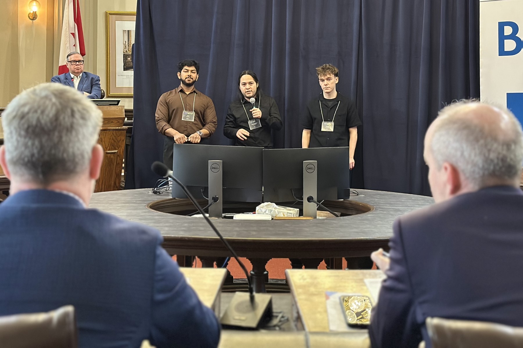 Post-secondary students from across Kingston recently brought their biggest and brightest ideas to the town's historic city hall for the 2025 Mayor’s Innovation Challenge, and two teams of Queen’s students won the top prizes. This annual competition hosted by the City of Kingston calls on students to develop proposals for projects that would help improve the lives of people in the local community. The teams with the most promising projects are then invited to take part in a pitch competition where they present their idea to a panel of six judges composed of local leaders and experts, including representatives from Queen’s.