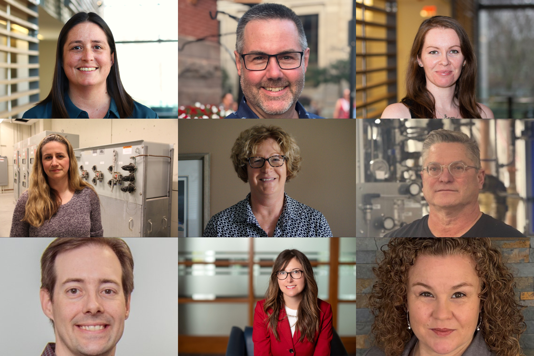 Individual recipients of the Special Recognition for Staff Awards, included, clockwise from top left: Alana Korczynski, Duane Parliament, Colleen Donahoe, John Odell, Sarah Indewey, Lisa Latour Colby, Graham Gibson, Janet Pollard, and Shannon Hill.