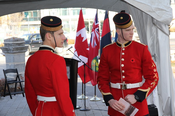The intent of this particular plinth is to remember the sacrifices of the men of the 5th Field Company, many of whom were the same ages as our students, and who unequivocally put others before themselves. Many people contributed to the realization of this memorial, and Dean Deluzio thanked the many supporters including 1 Engineer Support Unit and the Government of Canada.